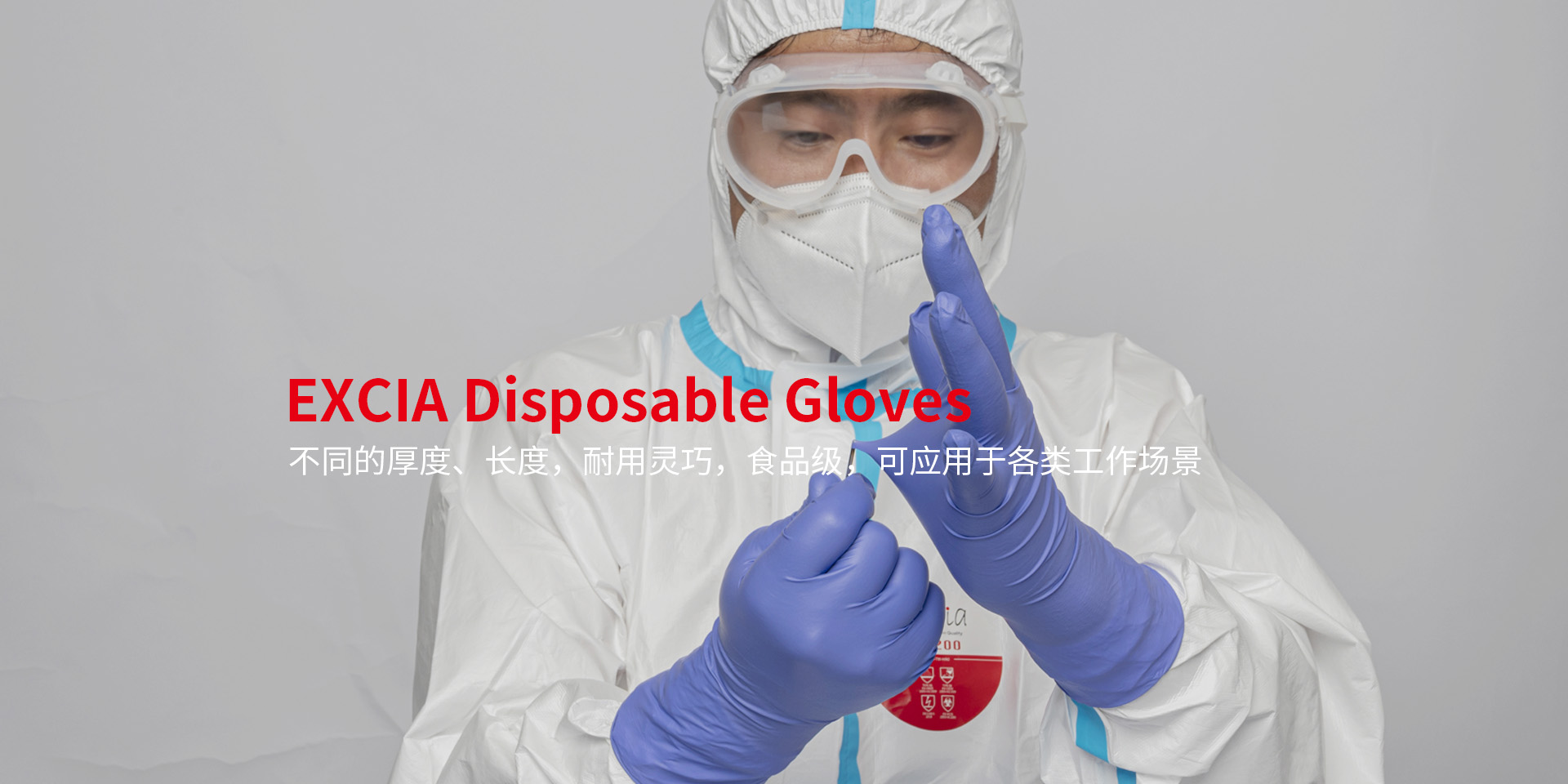 EXCIA一次性手套,选用优质丁腈材质,严格按照国际标准,LD低致敏技术解决方案,为客户提供更贴心的防护。独有配方,提供更好的化学品防护,优良的耐穿刺、抗撕裂和拉伸性能让手套更具耐用性。多种厚度、长度可供选择,满足不同工种和岗位需求。取得食品安全、清真、美国消防NFPA等相关认证或报告,让用户使用更安心。