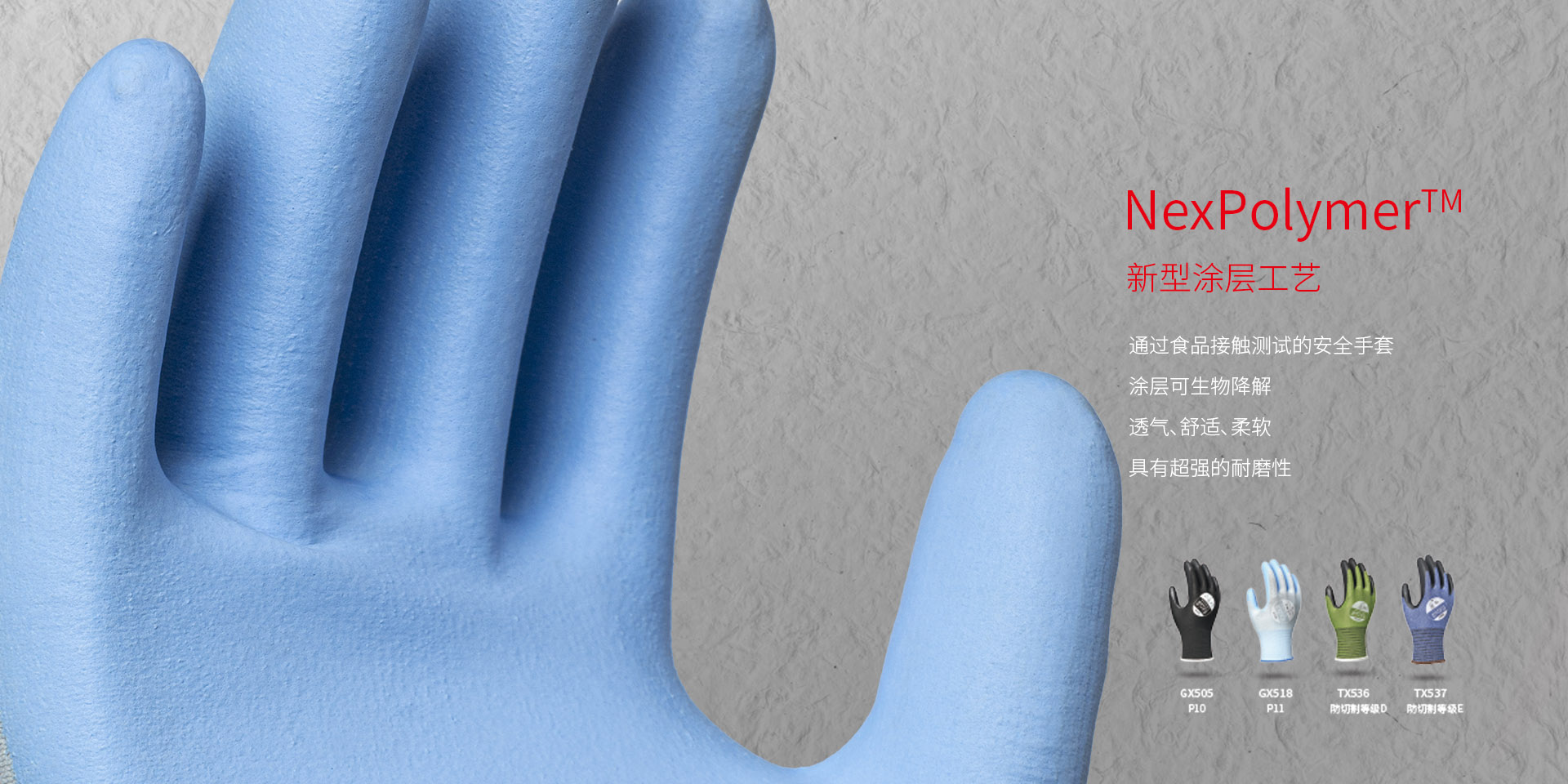 EXCIA通用操作手套利用公司独有的Nexploymer、Bio-ploy涂层材料,通过发泡、起皱、磨砂等多种精湛的涂层工艺与纱线包覆技术,大幅提升了手套的灵巧性、抓握力、舒适度和耐用度。在支持安全和舒适的兼容性的前提下,有效降低佩戴手套的疲劳感,提升了工人的工作效率。